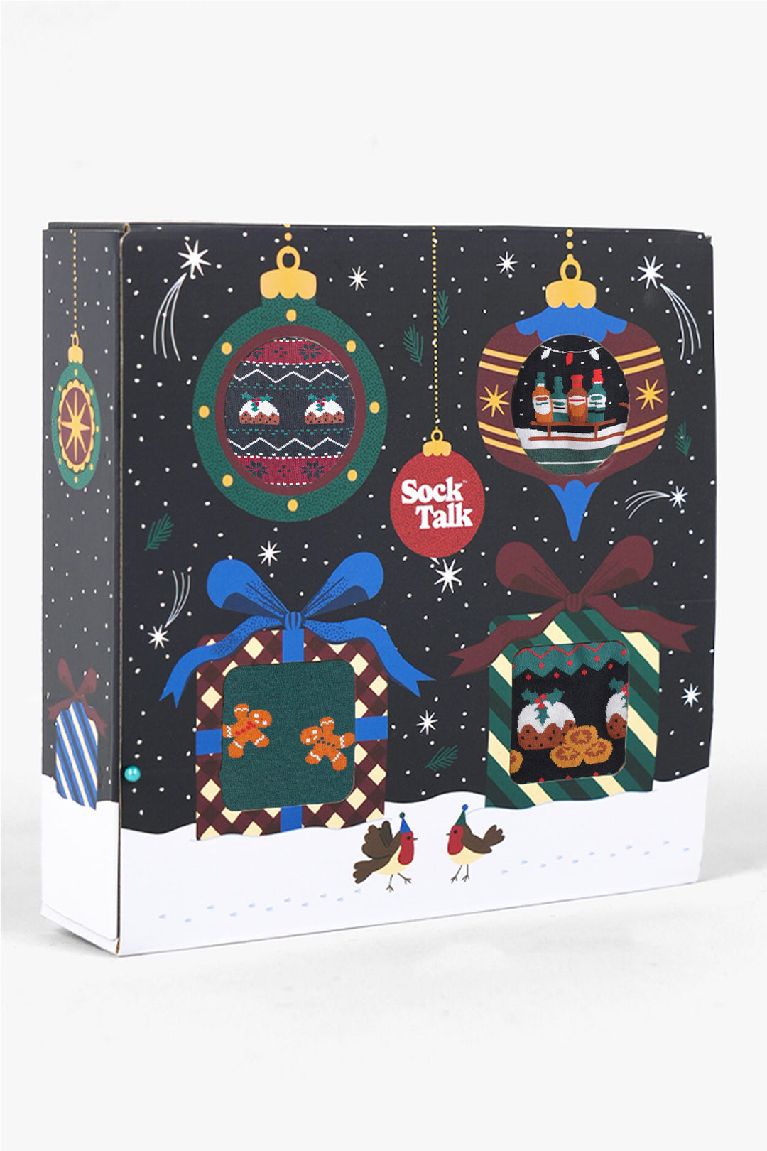 Men's Bamboo Crew Socks Festive Gift Set - Black/Red, Classic Christmas