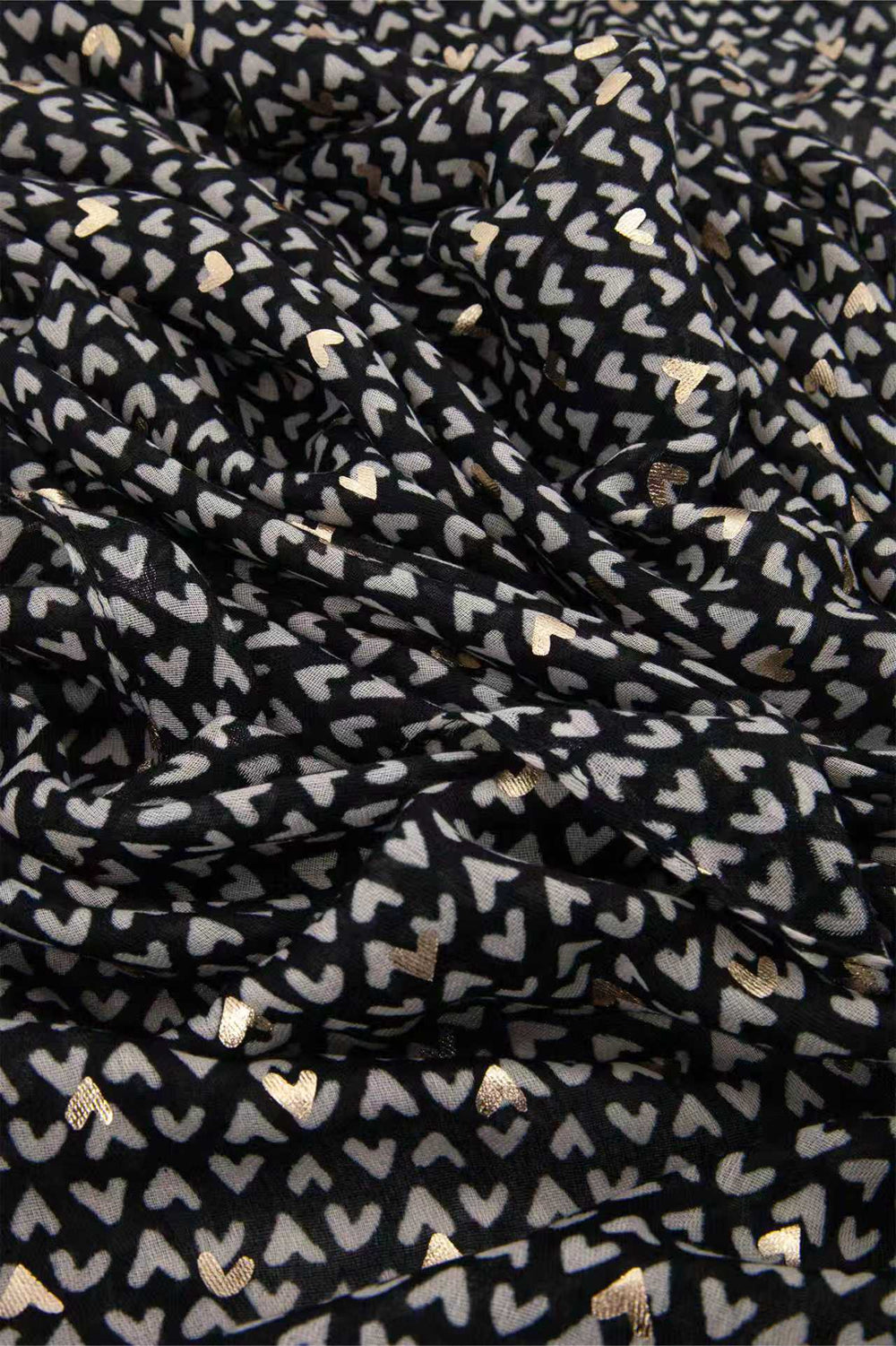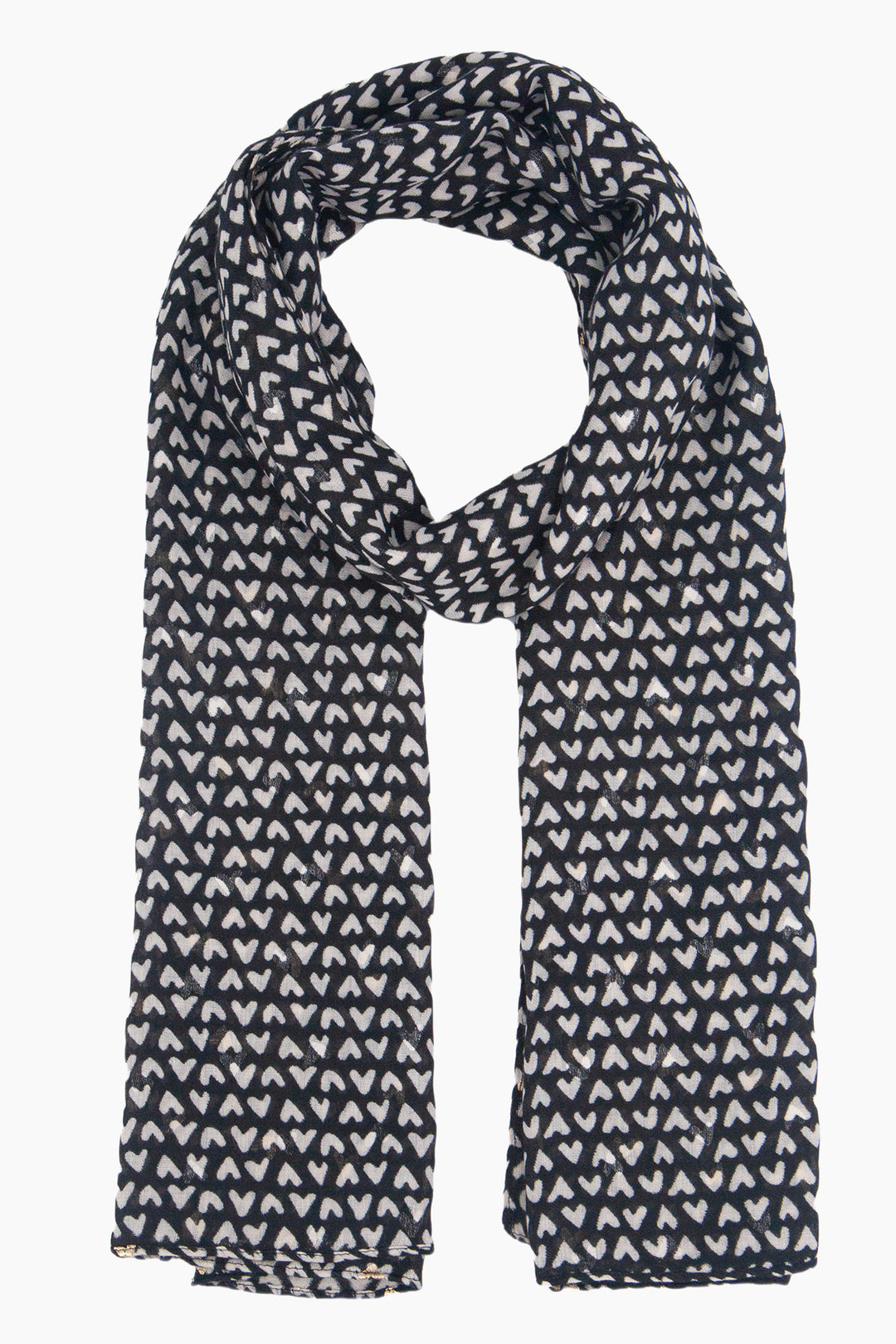 Rainie Black Metallic Hearts Lightweight Scarf