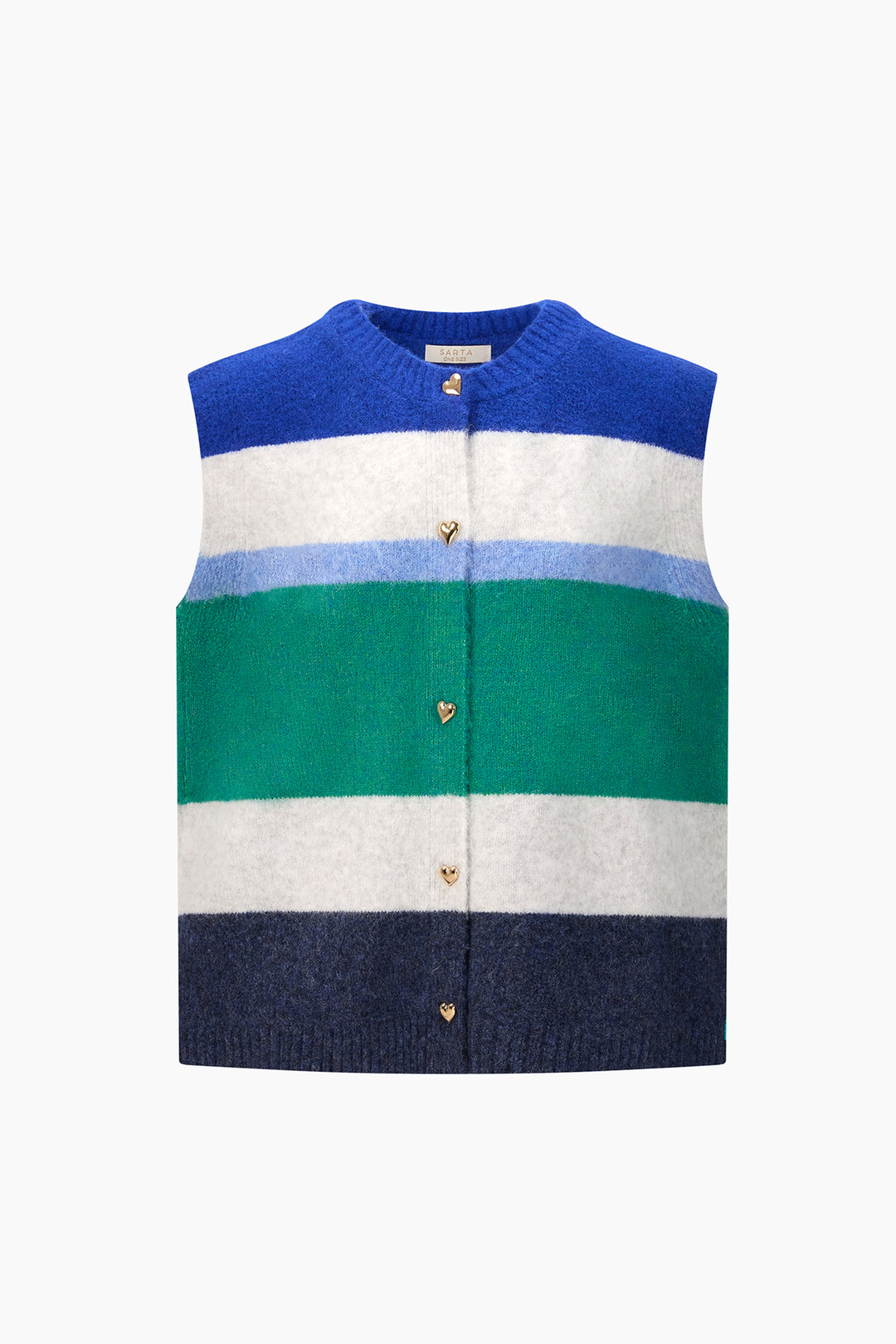 Heart Buttons Striped Sleeveless Vest in Green/Blue