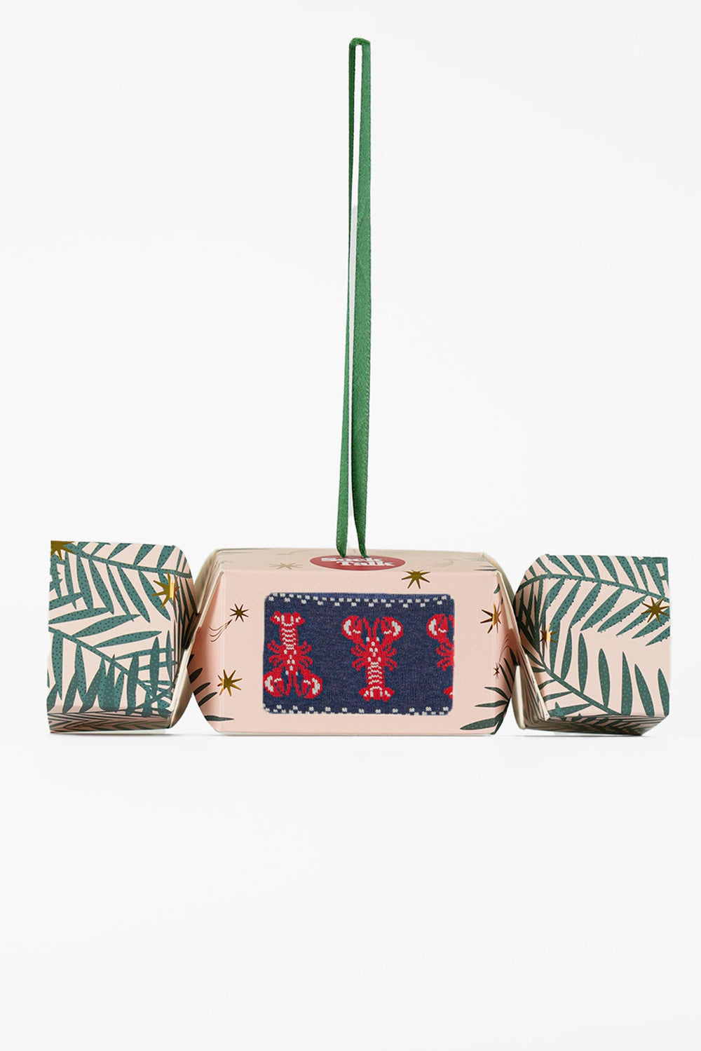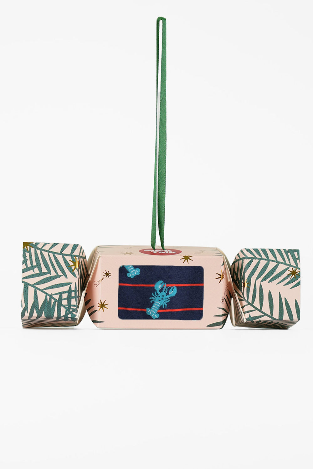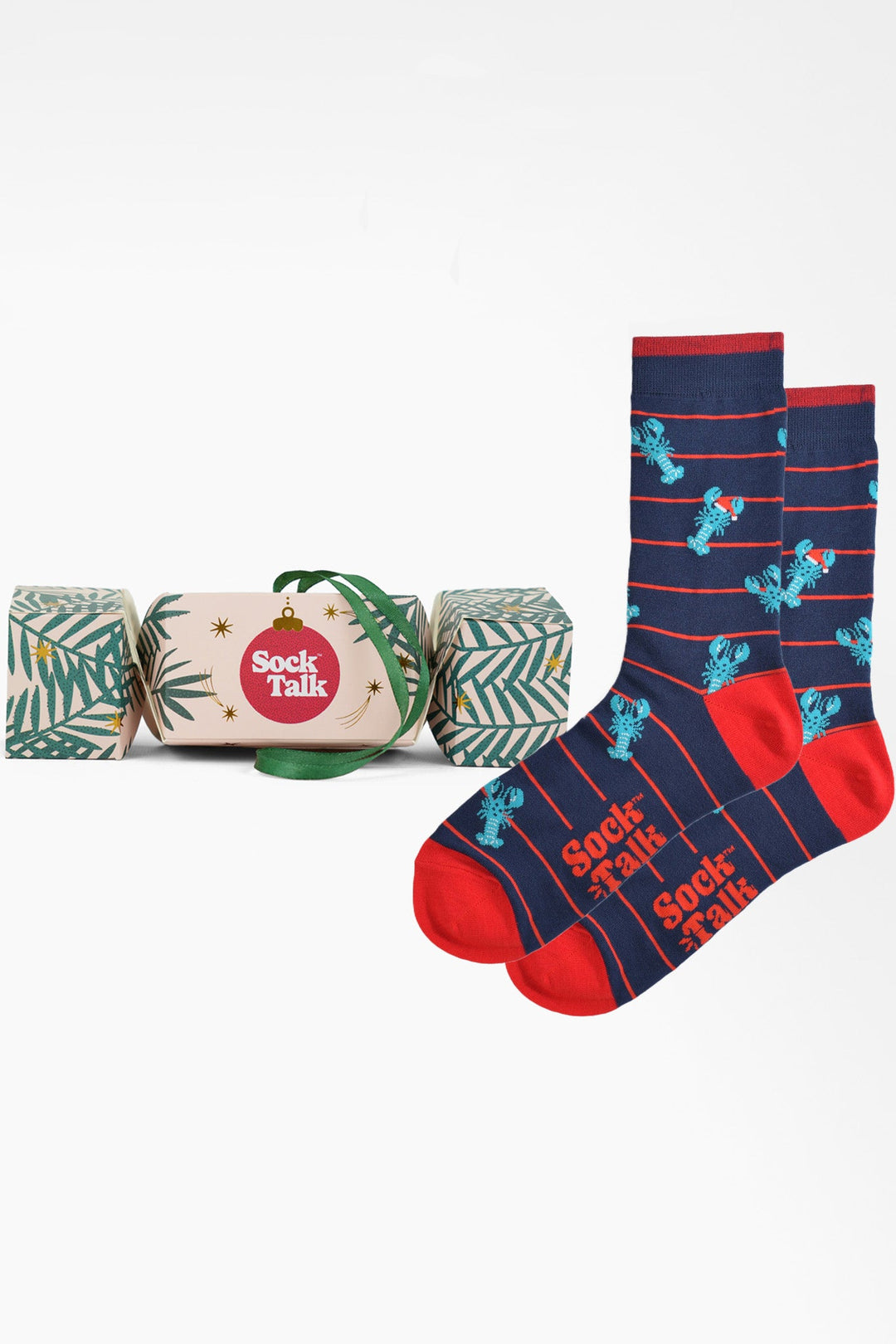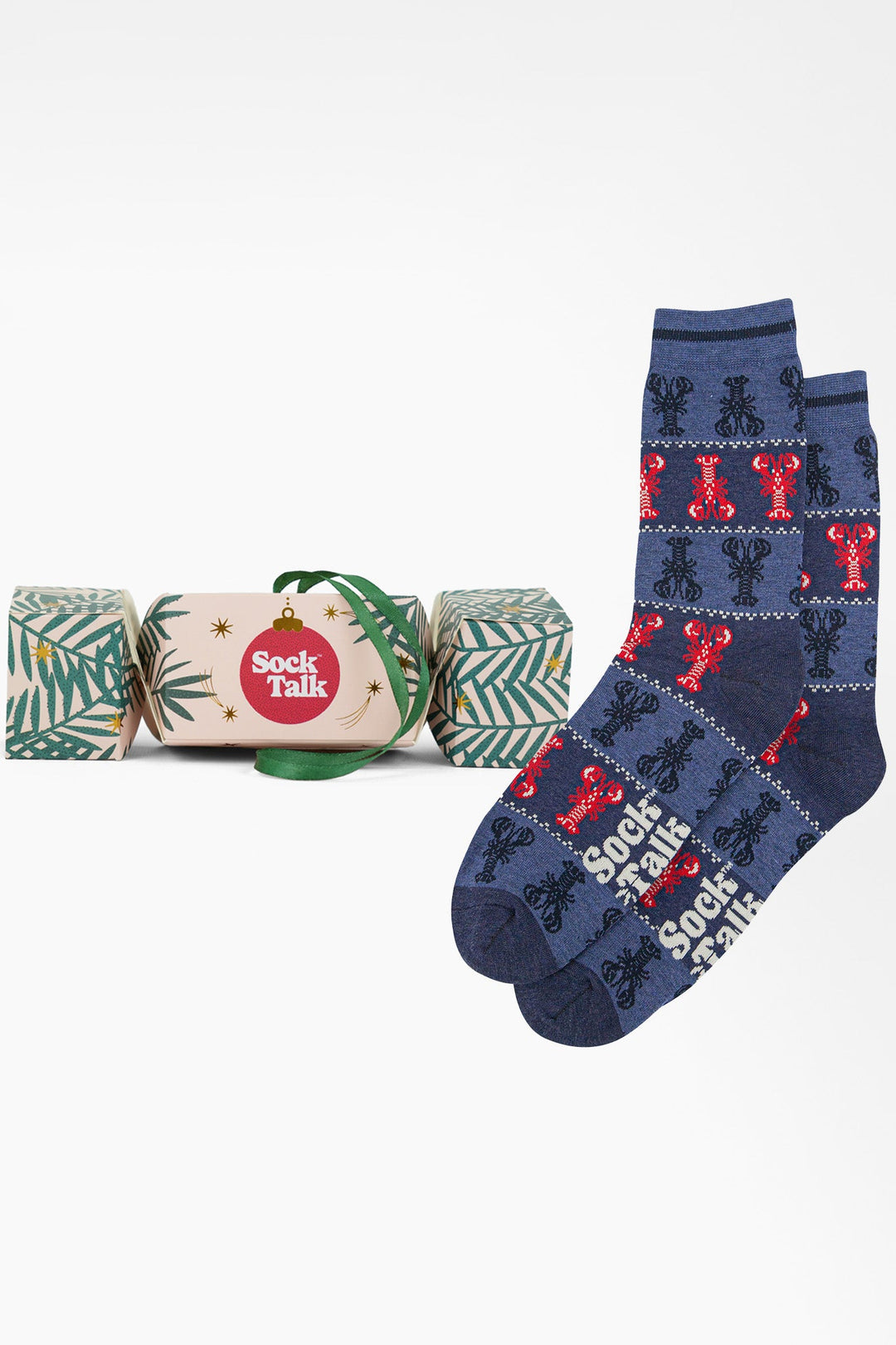 Men's Bamboo Crew Socks Christmas Cracker Gift Box - Navy Blue/Red, Christmas Lobster