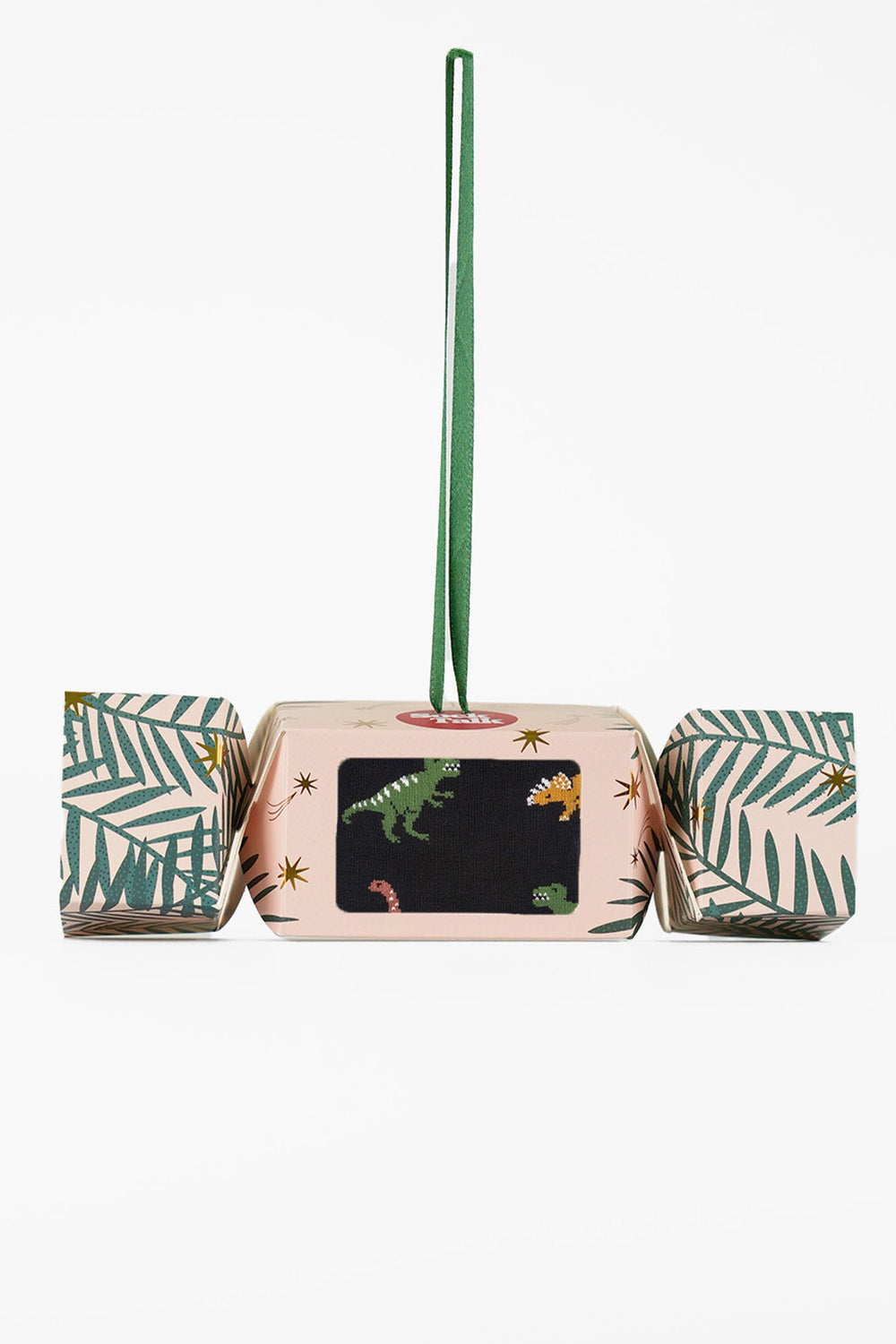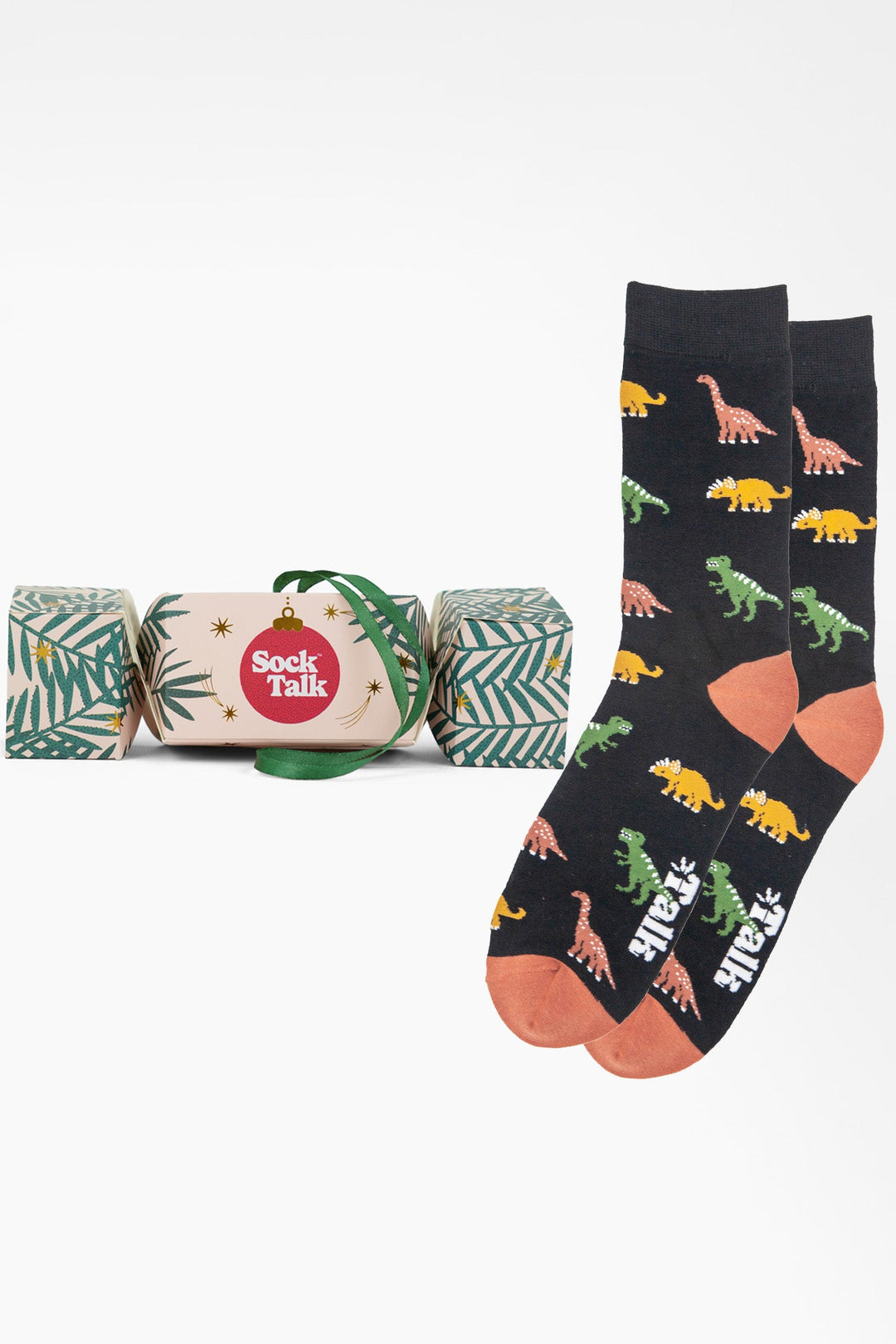 Men's Bamboo Crew Socks Christmas Cracker Gift Box - Black/Multi, Dinosaurs