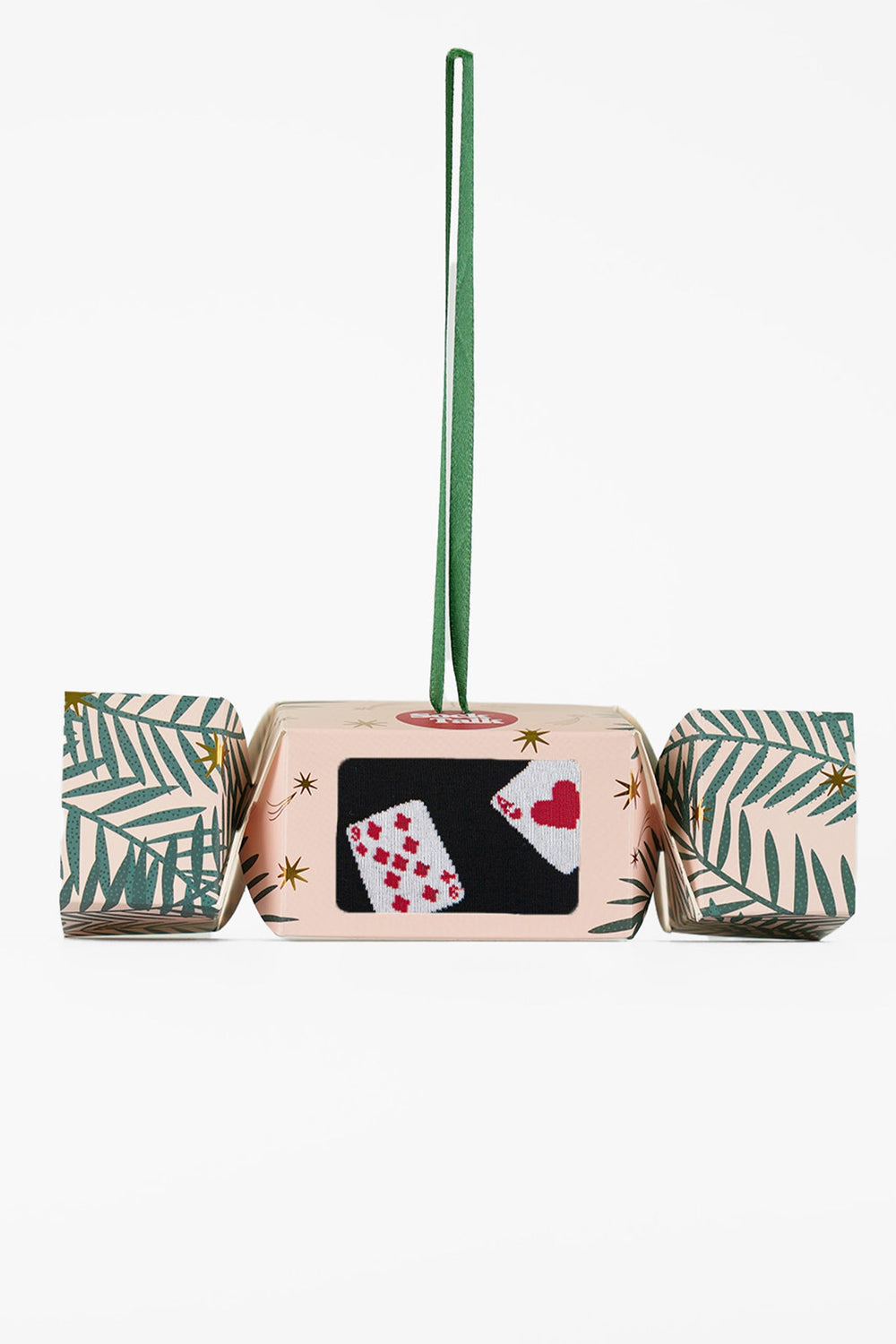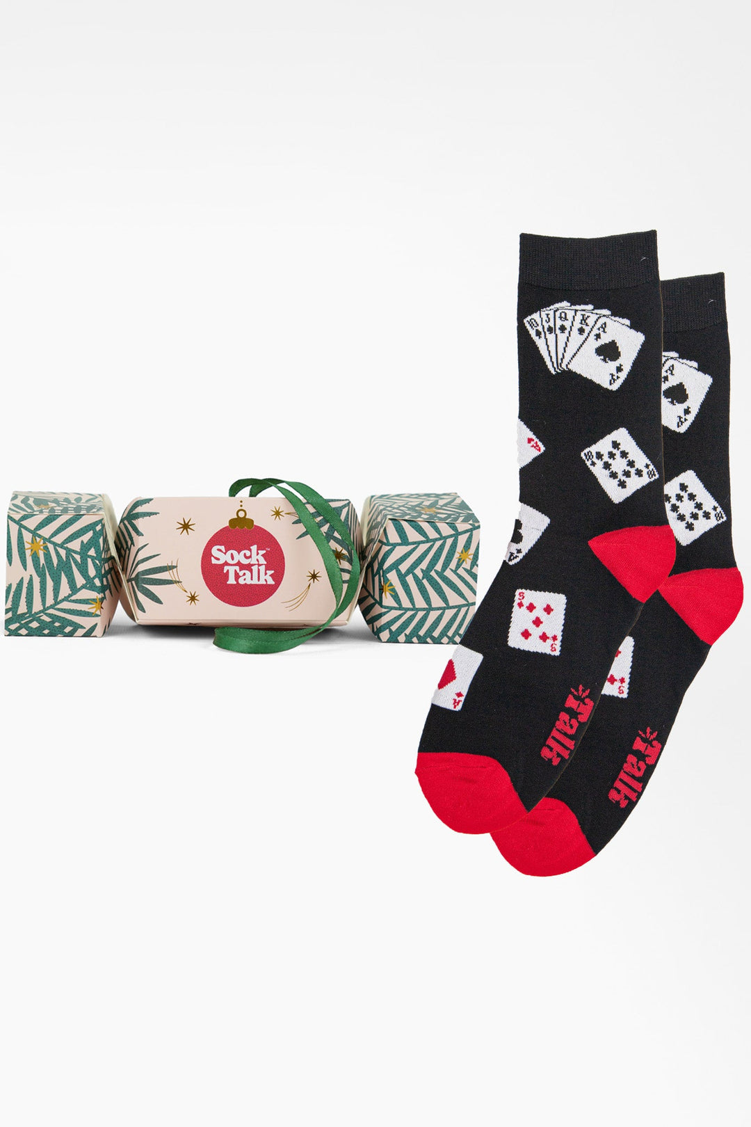 Men's Bamboo Crew Socks Christmas Cracker Gift Box - Black/Red, Poker Cards