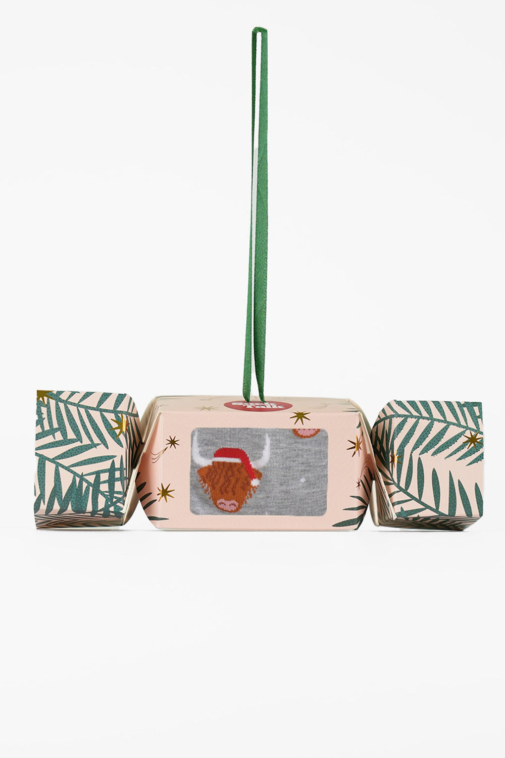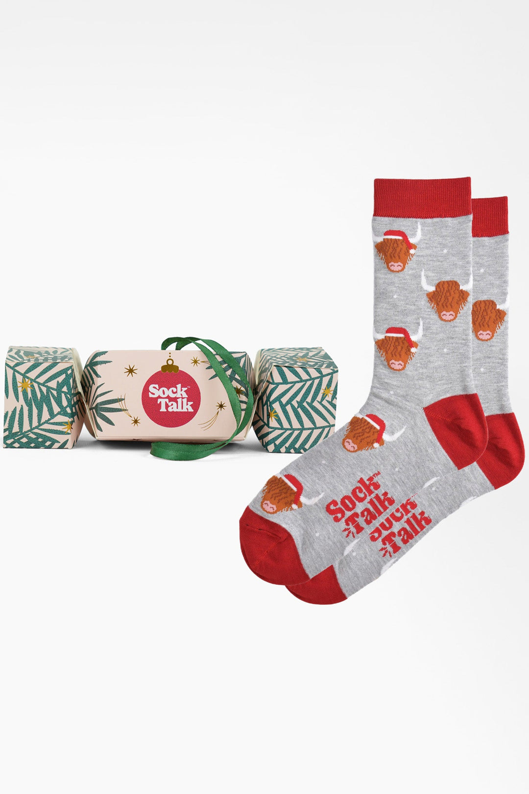 Men's Bamboo Crew Socks Christmas Cracker Gift Box - Grey/Red, Christmas Highland Cow