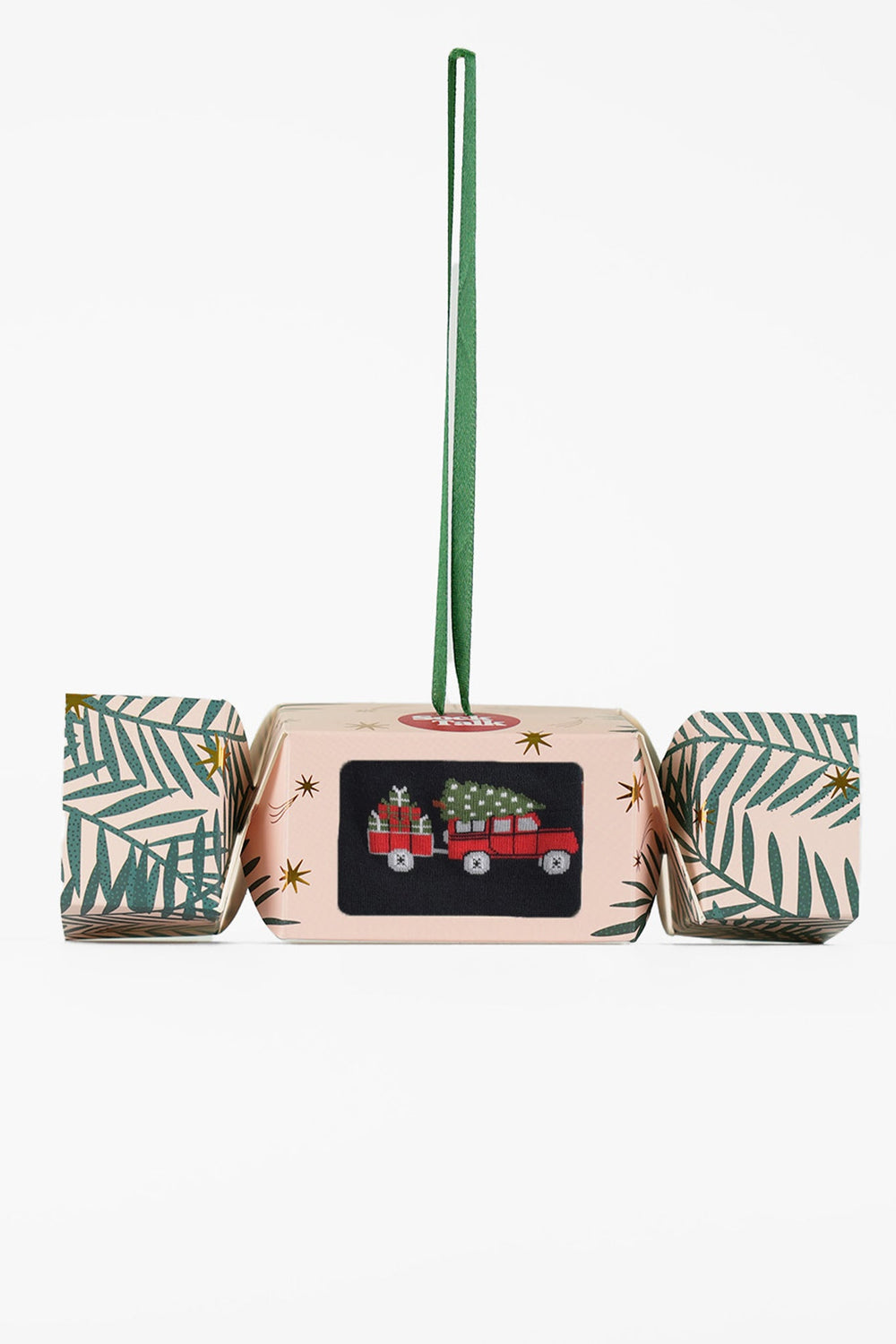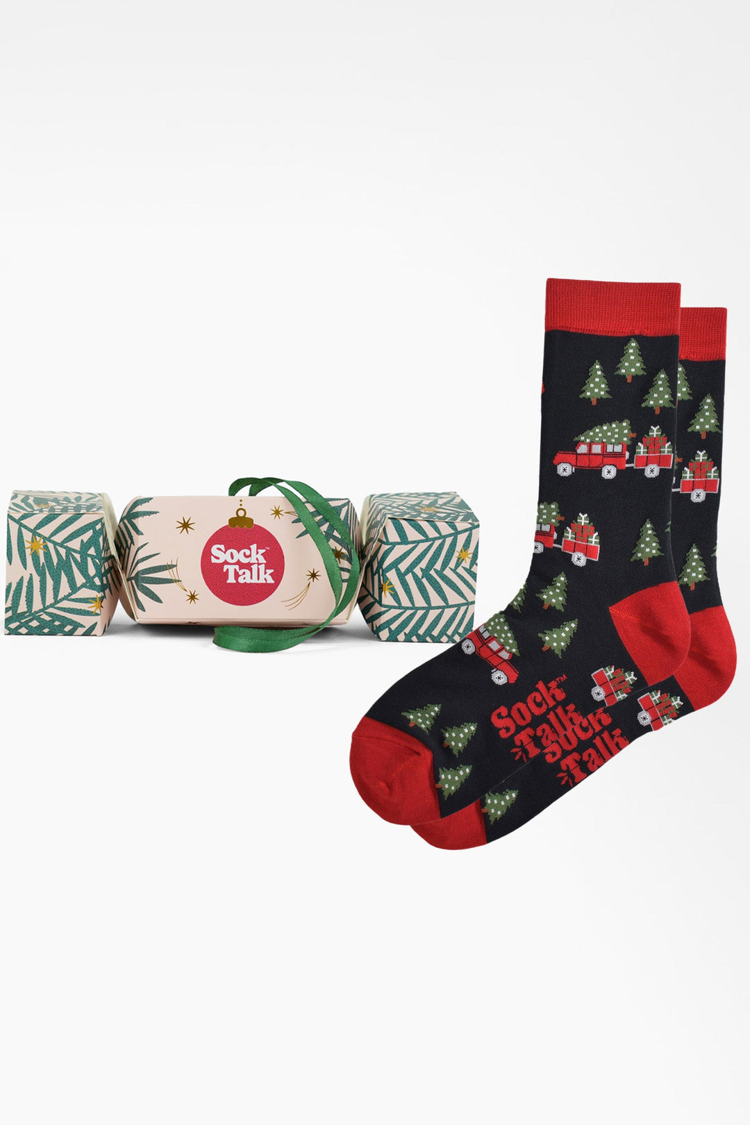 Men's Bamboo Crew Socks Christmas Cracker Gift Box - Black/Red, Christmas Tree Off Roader