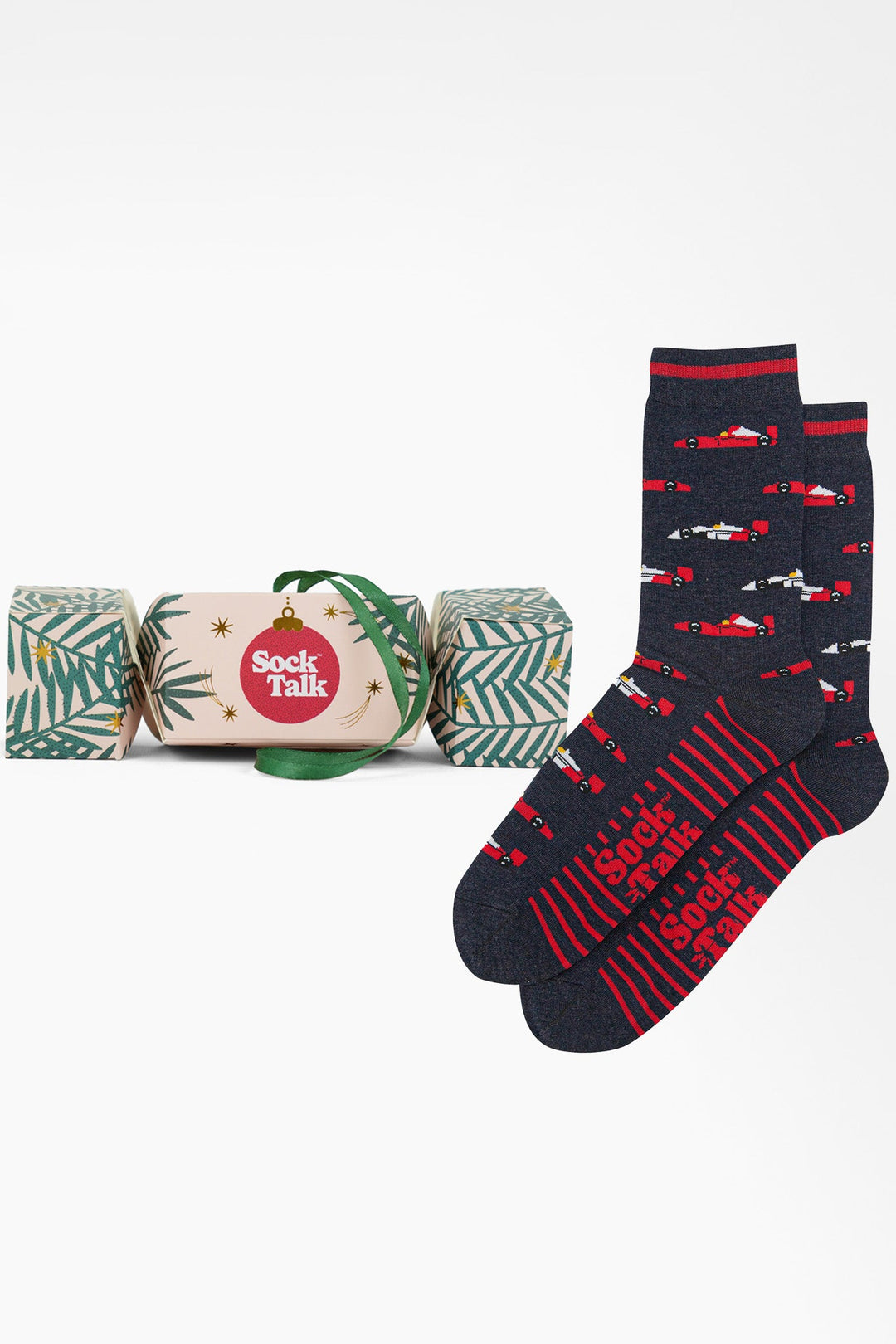 Men's Bamboo Crew Socks Christmas Cracker Gift Box - Navy/Red, Race Cars