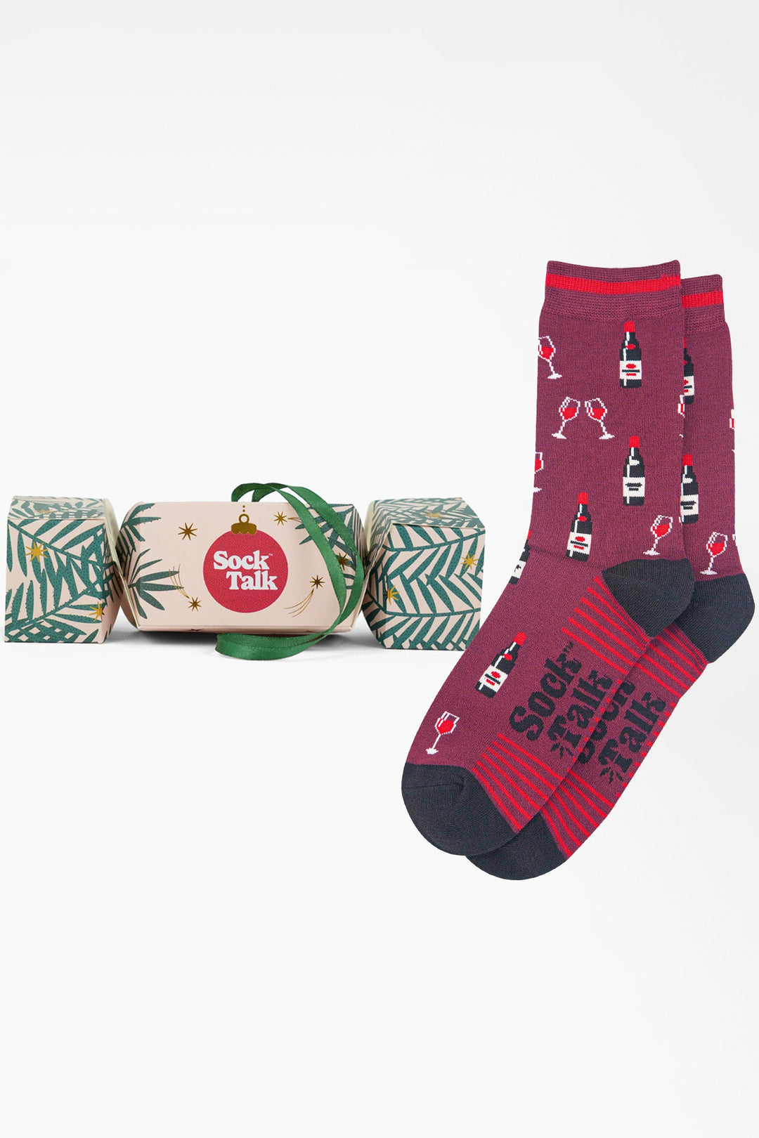 Men's Bamboo Crew Socks Christmas Cracker Gift Box - Burgundy/Black, Red Wine