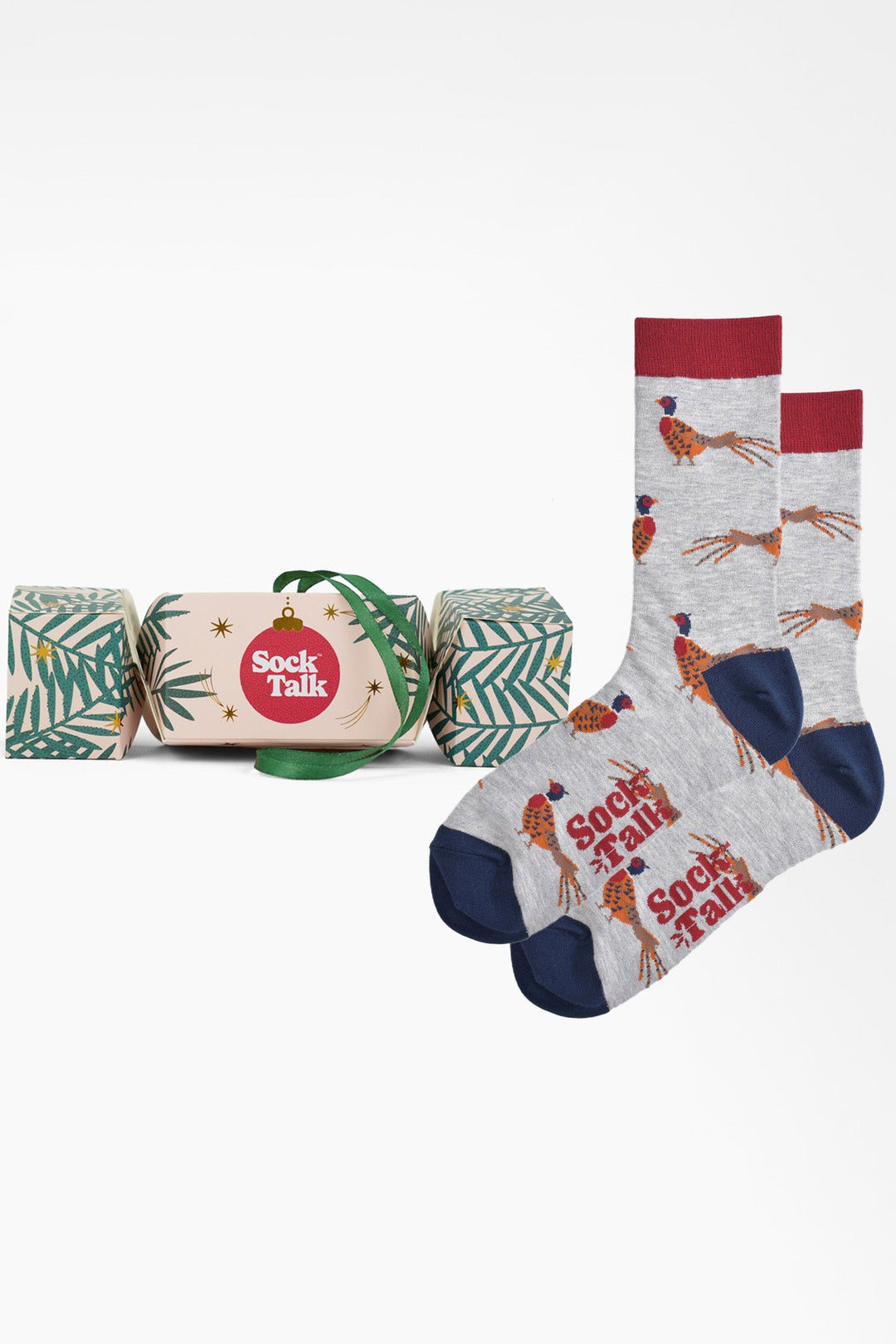Men's Bamboo Crew Socks Christmas Cracker Gift Box - Grey/Navy Blue, Pheasant