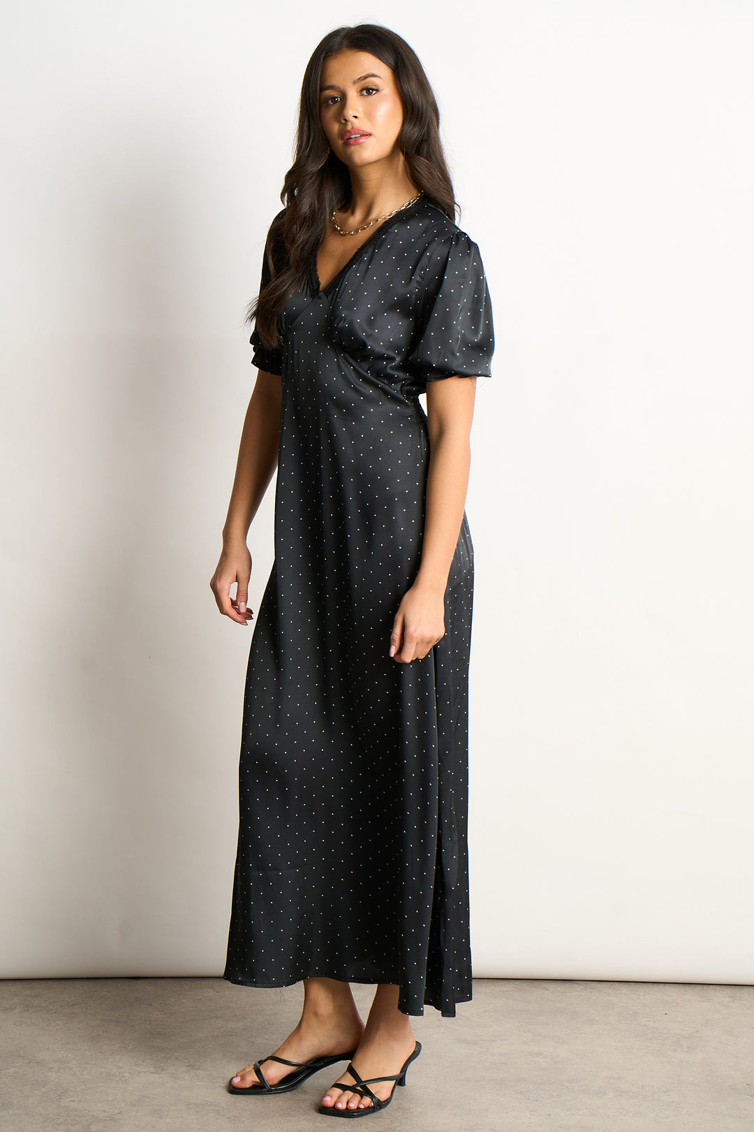 Elise V-Neck Tea Dress- Black/White, Polka Dot